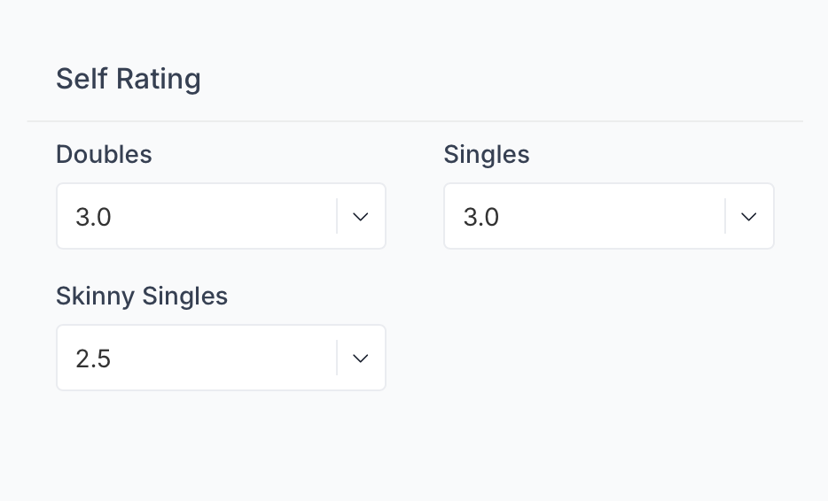 When you first signed up for pickleball.com account, you are asked to add a self-rating.