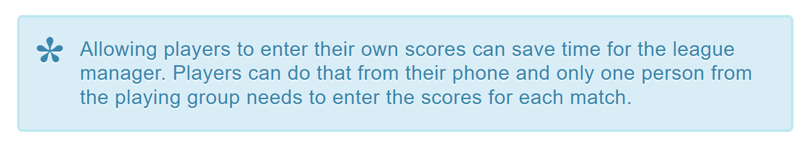 Allow Player Score Entry: Decide if you want to allow partners to enter scores. If set to 'yes', players can only enter scores only for matches they participated in.
