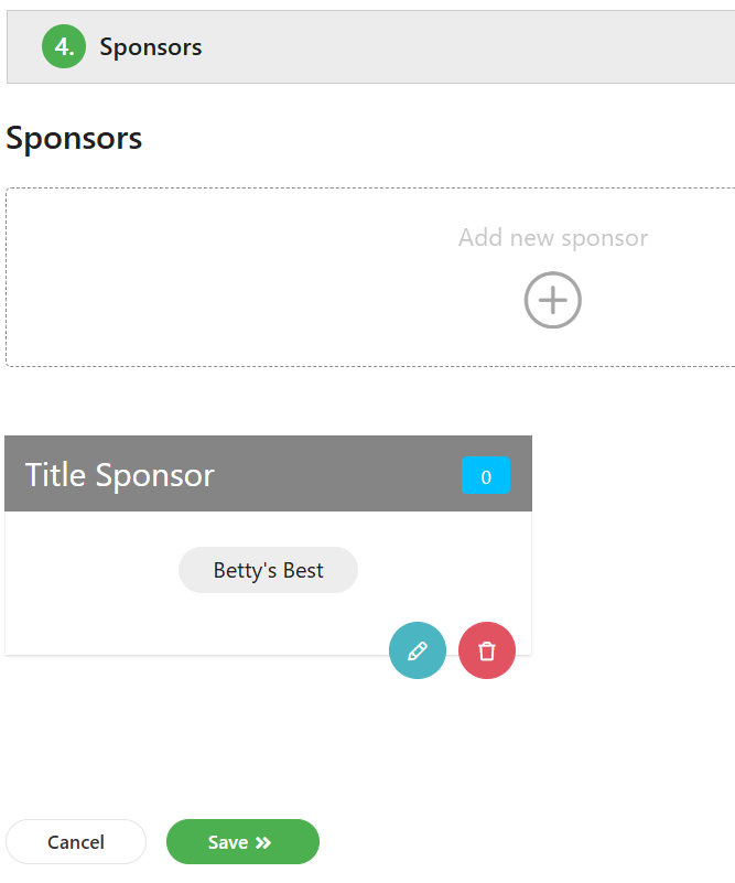 Click on the plus sign to add new sponsor. Sponsors added will be listed below this box.