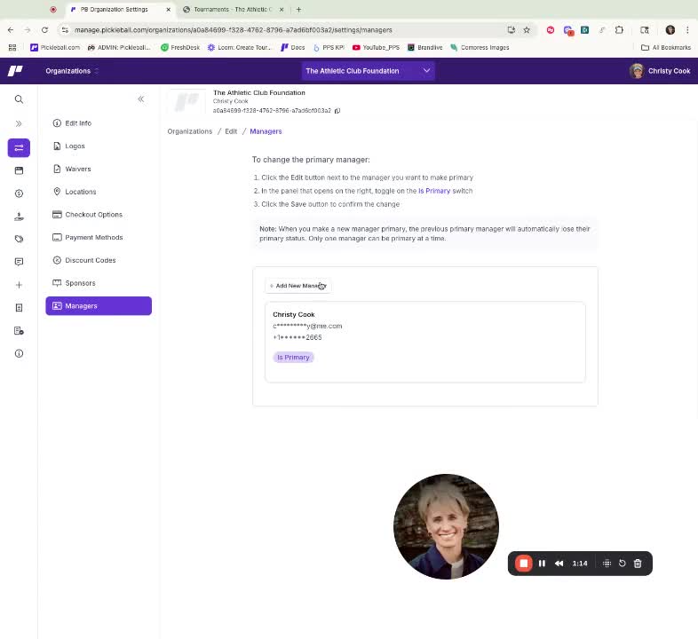 Note: The user that requested the club creation was already selected as the Primary Manager. This can be changed by adding a new manager and giving them primary right. YOU CAN ONLY HAVE ONE PRIMARY MANAGER.