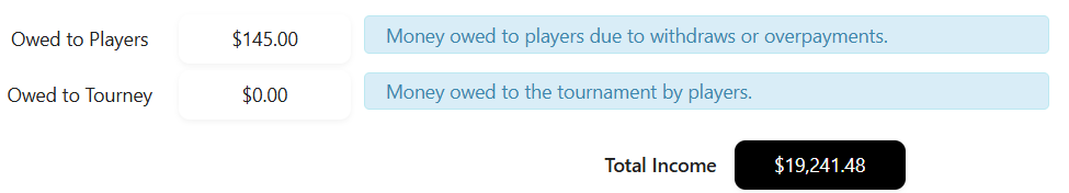 This section provides a breakdown of the income reported in your tournament. Below are what each line means: