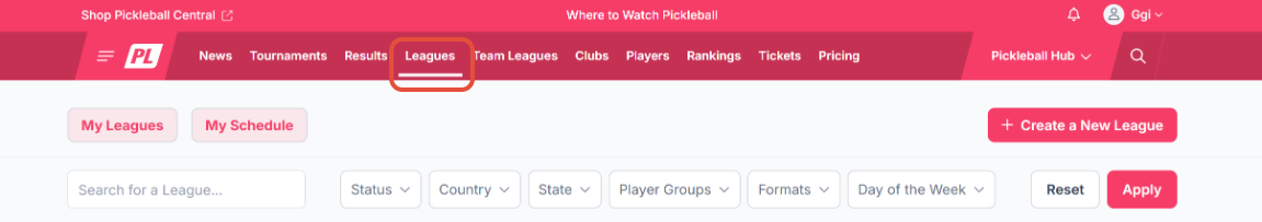 - Click on the League name you wish to join