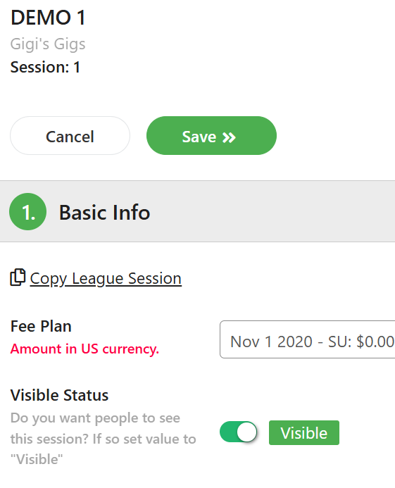 - Edit Current Session - Allows the league manager to modify details for the current league session.