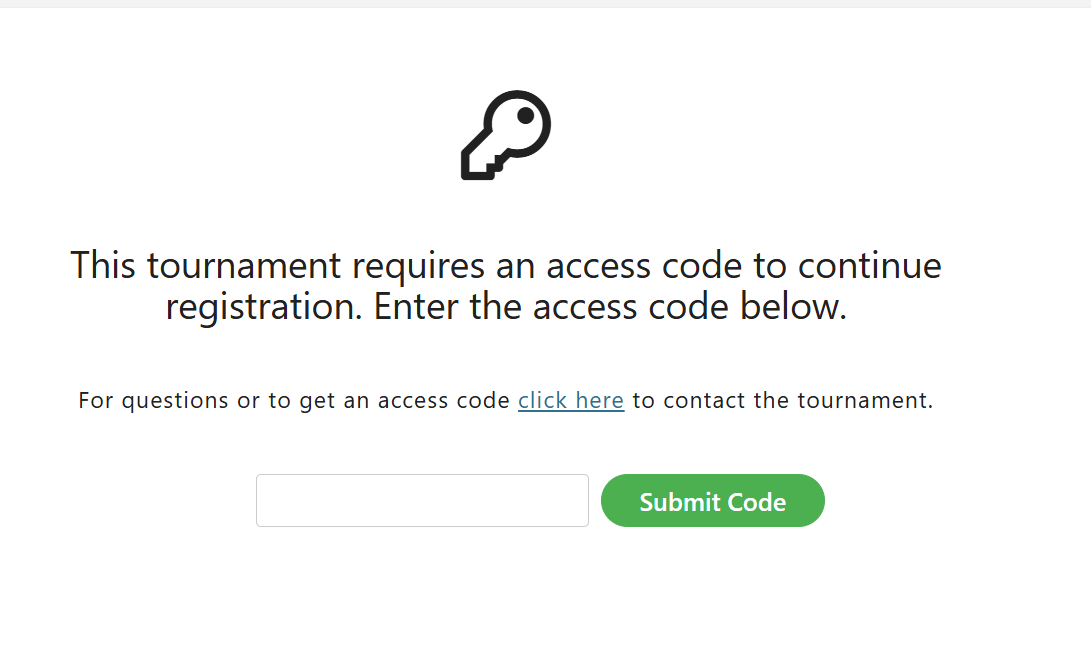 The first required step given to them during the registration process will be to enter the code. If they don't have the code, they can use the "click here" button to contact the tournament owner directly.
