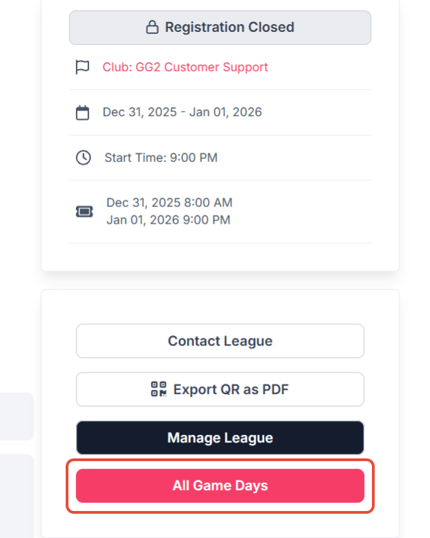 Click on Game Days to select the Game Day you are needing to adjust