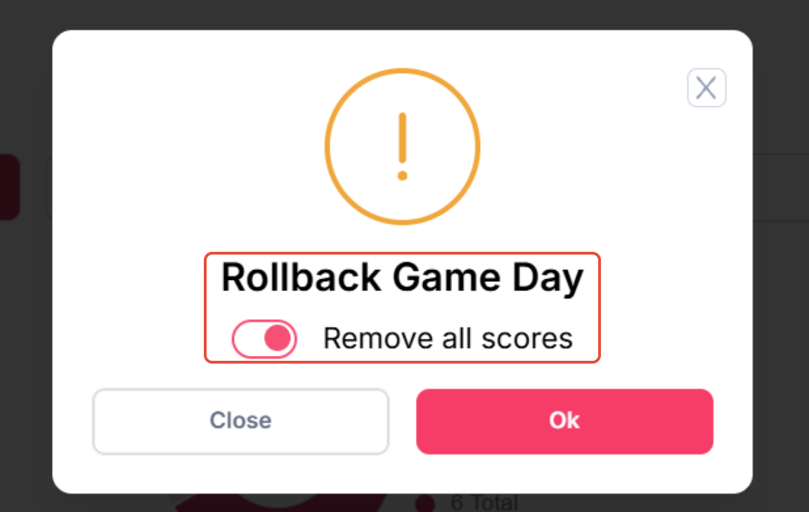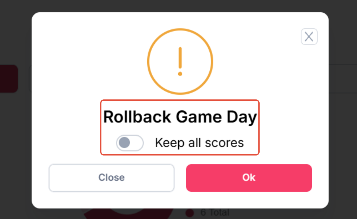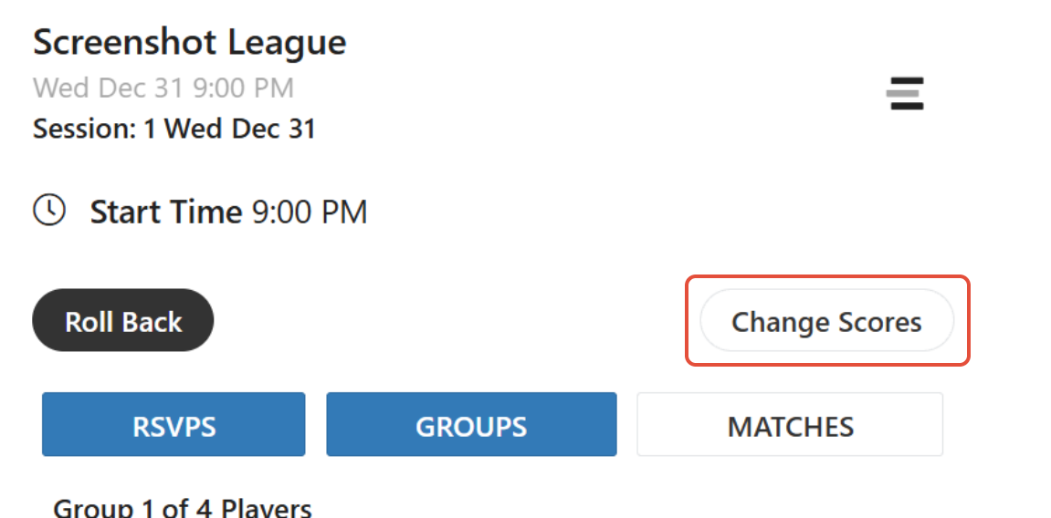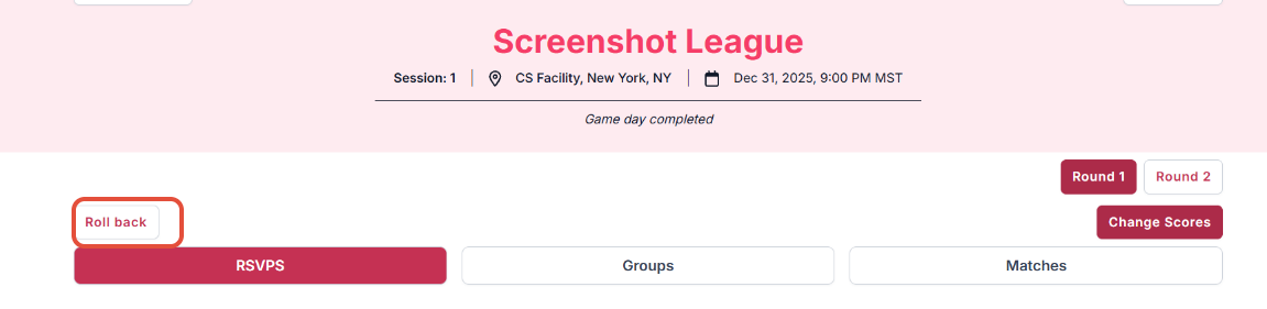 If you have to roll back several game days, please be sure to have the scoresheets available or print each groups scores so you have them to reenter.