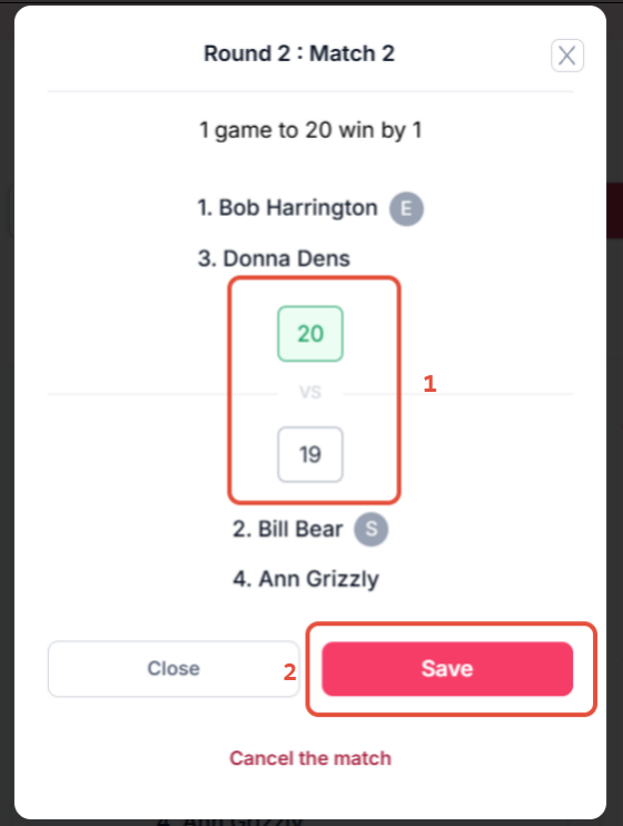 1. Click on the score box that needs to be changed