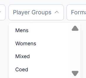 5. Player Groups - You can designate your search by Mens, Womens, Mixed or Coed