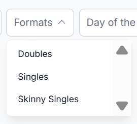 6. Formats - You may designate your search by Doubles, Singles or Skinny Singles